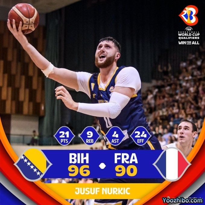 24直播网讯:北京时间2022年8月28日,波黑男篮双加时96-90击败法国队,努尔基奇和戈贝尔犯规在法国队的比赛中,波黑首节一度领先18分,法国队领先12分在第三季度。结果,波黑20-0进攻波黑。波黑在第四节一度领先10分,法国队紧追不舍。双方经历了两次加时赛,波黑96-90战胜法国队。