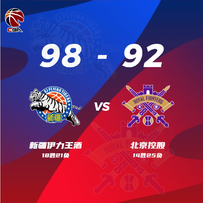 24直播网讯:北京时间3月29日,CBA常规赛继续进行,新疆男篮主场迎战北控男篮。  最终,新疆队98-92击败北控队。