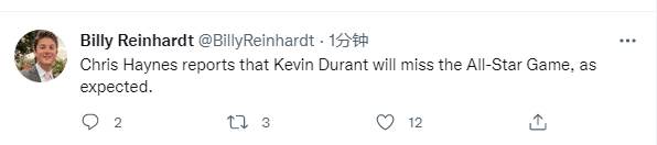 杜兰特因伤无缘全明星赛,名记确认詹杜连续三年无缘对决太遗憾
