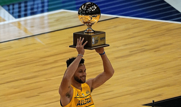 库里的三分球手感火热,毕竟是刚拿下了三分球大赛的冠军,当然相比起哪支球队获胜和谁可以拿下MVP的荣誉,大家更希望看到的是詹姆斯和库里之间的连线,毕竟这是两位目前NBA联盟代表性人物的首次合作,所以关注度是超高的。