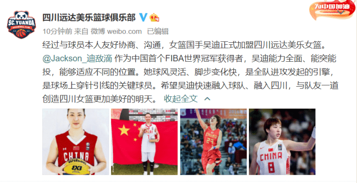 来源:24直播网08-30 11:3724直播网8月30日讯 ,WCBA四川远达美乐篮球队官方宣布韩旭和吴迪加盟,这个间歇期,她们已经连续签下了四名国手,整体实力大幅度提升,成为新赛季的争冠热门球队。
