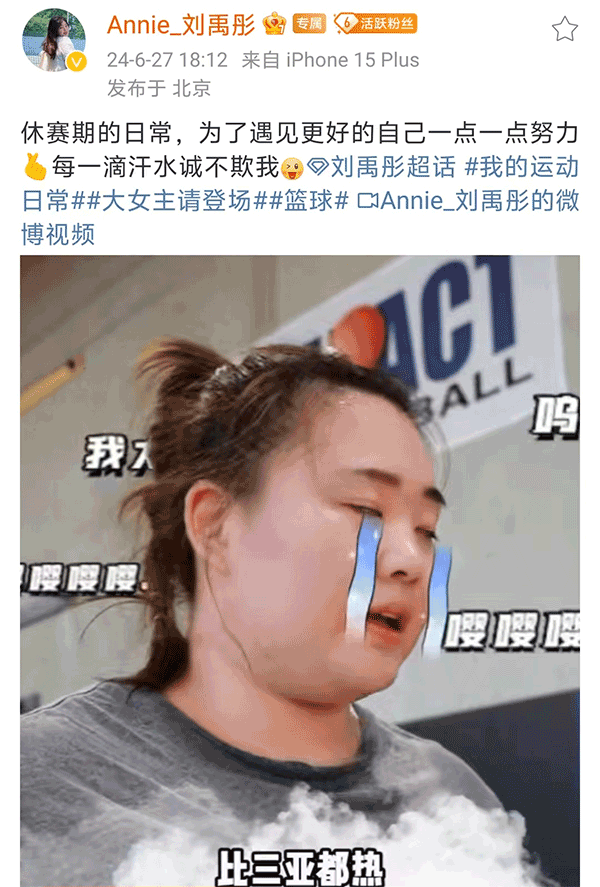 可还最终的结果,老将孙梦然、潘臻琦等人还是入选了,刘禹彤病没有得到郑薇指导的青睐。而在中国女篮的奥运会名单出炉之后,刘禹彤也是摊牌晒出了自己特训的动态,据悉,此前无缘入选中国女篮大名单,刘禹彤也是为了让自己变得更强,大宝贝也是自掏腰包前往美国进行特训。在抵达美国之后,为了让球迷了解自己的情况和监督自己,刘禹彤每天都会晒出自己的训练视频,从刘禹彤晒出的视频来看,高强度的训练也是让刘禹彤搜了一下,她的移动能力和中远投能力也是更加稳定了,可是刘禹彤还是没有得到召唤。