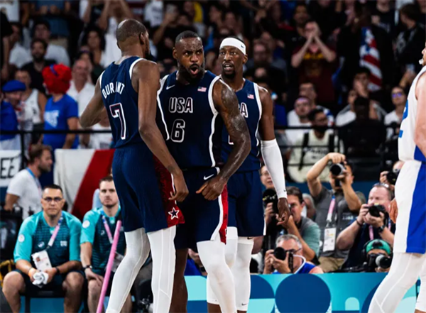 末节,詹姆斯带队再次领先到两位数,文班亚马和亚布塞莱带队保持悬念;关键时刻,杜兰特送出大帽,詹姆斯助攻库里命中三分,杜兰特造犯规罚球得分,最后时刻,库里连中三分疯狂怒吼庆祝,最终美国男篮拿下比赛,创造奥运五连冠伟业。