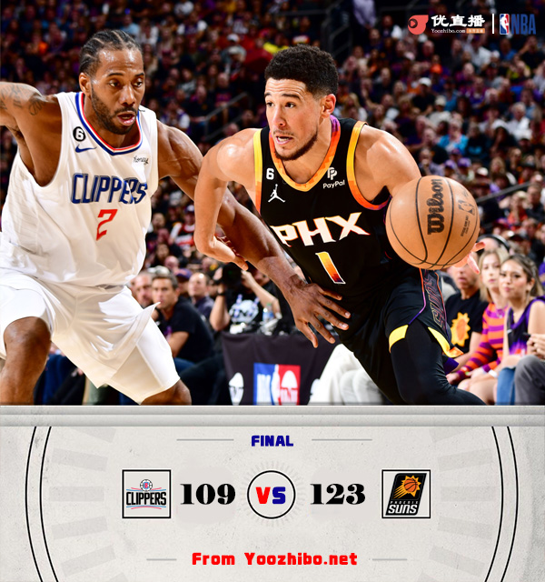 24直播网 4月19日讯 NBA季后赛首轮第二场对决,太阳主场继续迎战快船,双方首场季后赛,威少最后时刻一封盖加一球权帮助快船以下克上、先下一城,本场比赛佩恩继续缺阵。比赛上来,快船就外线接连3记三分打出一波11-2进攻高潮,好在太阳依靠火热的中投手感给出回应,小卡连续防成杜兰特,进攻端有攻有传帮助快船建立主动权,次节快船替补席多点开花拉开双位数领先,艾顿接连中投止血,随后威少里突外投连续取分,杜兰特中投几乎一个不丢强势回应带队追平比分。下半场,太阳上来就一波6-0建立领先,并开始包夹小卡,布克几乎弹无虚发单节轰下18分帮助太阳保持住主动权,末节快船上来进攻端还是受阻,太阳抓住机会将分差拉开至双位数,随后保罗接连中距离牢牢掌握住10分左右领先,最终太阳123-109逆转快船,总比分扳成1-1。