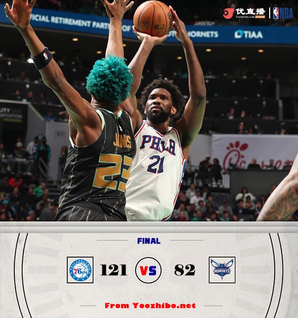 24直播网3月18日讯 NBA常规赛,黄蜂今日迎战76人,前者三连败后排在东部倒数第二位,后者则是三连胜暂列东部第三位,此役马丁和马克-威廉姆斯缺战。比赛上来,两队就陷入到拉锯战,场上比分交替领先,次节前半段黄蜂依旧能够与对手保持胶着,但之后76人突然发力占据场上主动,分差也是逐渐拉开到了两位数,半场结束时黄蜂落后12分;下半场回来黄蜂直接断电,前四分钟时间里一分未得,76人趁势一波11-0的小高潮将分差扩大到二十分以上,末节上来76人再轰13-0后分差突破了三十分,比赛彻底失去悬念,最终76人大胜黄蜂迎来四连胜。