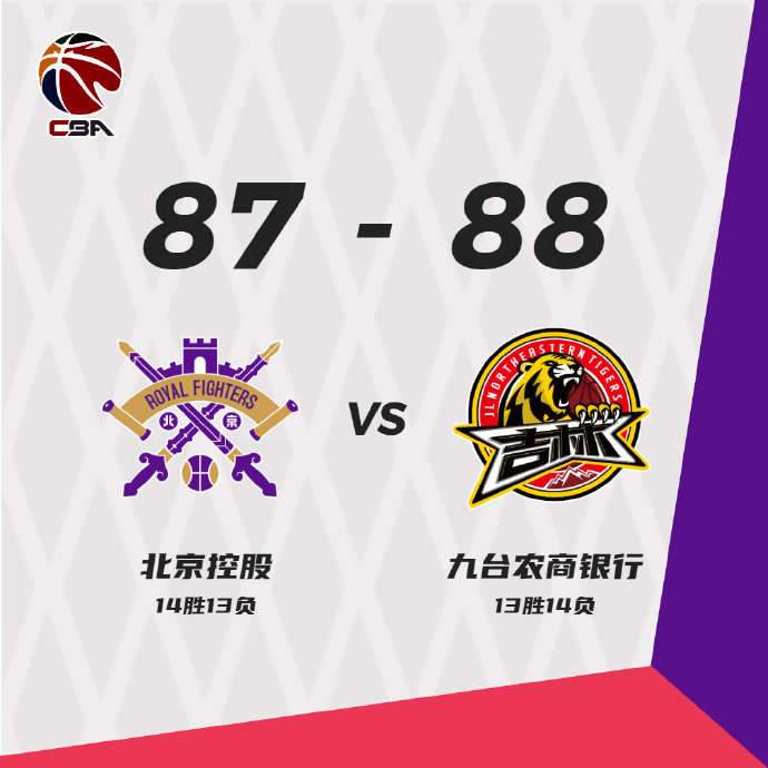 24直播网1月26日讯 CBA常规赛,北控今日对阵吉林,前者上场比赛输给辽宁排在联赛第十位,后者则取得三连胜排名积分榜第十二位。比赛上来北控进入状态较慢,而吉林这边琼斯手感火热,个人连续得分带队取得领先,之后的比赛北控虽然有反扑的势头,甚至一度将比分追平,但他们始终无法实现反超,半场结束时吉林依旧领先5分。易边再战,北控依靠着廖三宁和王俊杰的出色发挥迅速实现反超,不过吉林一直紧咬比分没有让对手将分差拉开,比赛悬念一直保持到了最后,关键时刻兰兹博格和马泳相继投出绝杀球都未能命中,最终吉林险胜北控,迎来四连胜。