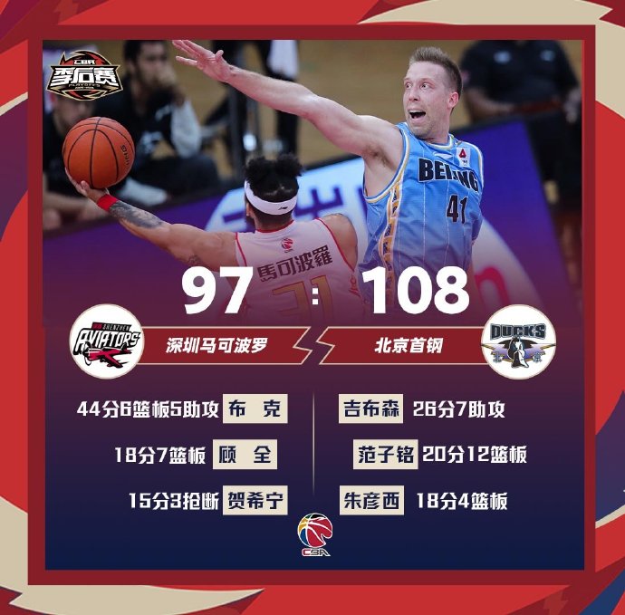 北京:范子铭20分12板,吉布森26分3板7助,朱彦西18分4板,雷蒙13分5板2助,王骁辉6分,田宇翔4分3板7助,汉密尔顿8分2板,李慕豪3分4板,迈克瑞7分1板,杨阿力2分5板