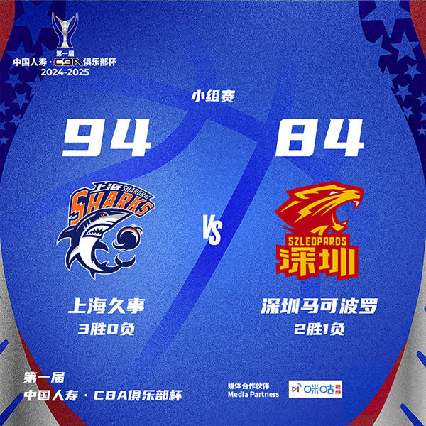 24直播网11月16日讯 CBA俱乐部杯惠州赛区,上海对阵深圳,本场比赛前两队都在俱乐部杯迎来连胜。深圳上来就多点开花接连反击打出15-4梦幻开局,洛夫顿手感一般,威尔逊中远投止血,但深圳还能回应并在首节领先9分,次节上海开始追分,打了不到2分钟深圳就犯满,随后深圳又陷入得分荒,上海接连外线三分反超比分,半场上海领先4分。下半场,深圳进攻端还是不在状态,打了半节上海14-4进攻波拉开双位数领先,三节上海领先到17分,末节上海接连三分命中直接拉开20分以上领先,深圳追分未果,最终上海94-84轻取深圳,拿到3连胜。