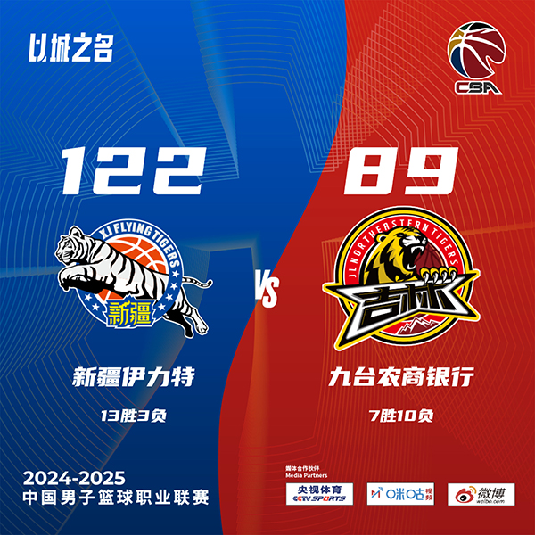 24直播网讯北京时间12月13日讯 CBA常规赛继续进行,新疆主场迎战吉林,新疆上场大胜辽宁,目前12胜3负暂列联赛第5,吉林迎来连胜后战绩更新为7胜9负,排在联赛第12位。首节开打后主场作战的新疆迅速发力,劳森连投带罚单节独得13分,黑根斯和皮特森续上火力,吉林进攻滞涩单节仅有19分,新疆确立21分优势,次节回来,吉林逐渐找到进攻节奏,基兹林克连续取分率队缩小分差,末段新疆进攻突然断电,吉林轰出11-0攻击波,半场战罢,新疆依然领先13分。易边再战后新疆重新找回状态,多点开花的他们牢牢占优,吉林进攻再度停滞未能及时回应,新疆带着31分优势进入末节,末节上来,两队早早换上替补阵容,比赛提前进入练兵时间,最终新疆122-89大胜对手迎来连胜,同时终结吉林的两连胜。