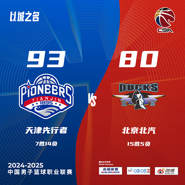 24直播网讯北京时间12月23日讯 CBA常规赛,北京客场对阵天津。北京15胜4负高居联赛第四,天津8连败目前6胜14负排在倒数第四。周琦本场缺阵。比赛开始,天津率先发力,内外开花打出17-5的开局,北京不断冲击内线频频得手努力追赶,次节双方围绕两位数的分差展开拉锯战,天津多点开花扩大优势,北京无力招架,半场战罢天津49-33领先北京。易边再战,北京奋力反击一度将分差迫近到只剩7分,天津连投带罚稳住局势,末节北京一波9-0迅速缩小分差,林庭谦挺身而出连得6分率队打出14-2的攻击波强势回应,北京苦苦追赶无果。最终,天津93-80击败北京,结束了自己的8连败。