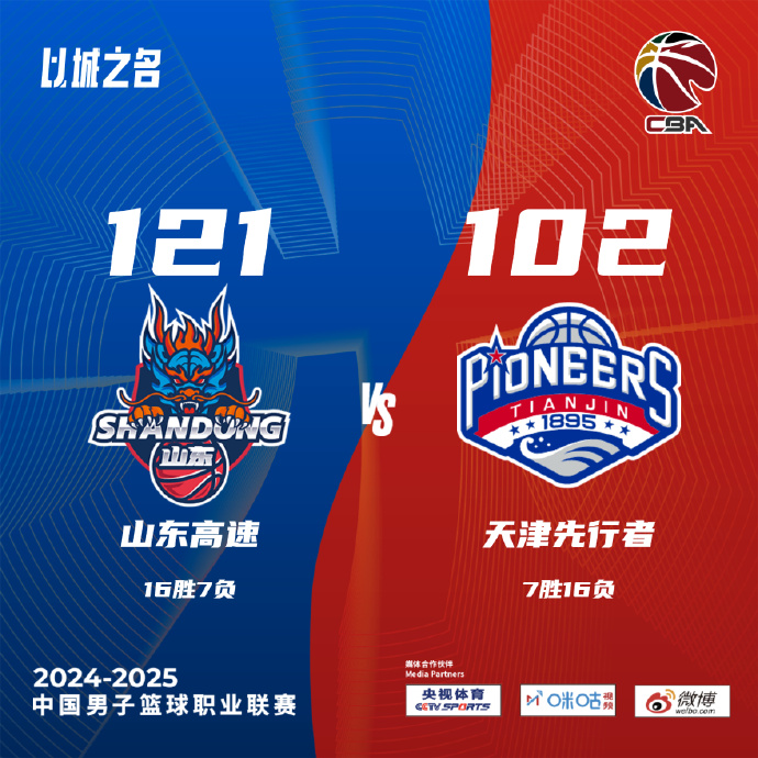 单节比分:33-21、32-17、31-36、25-28(山东在前)。