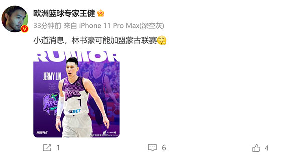 这是根据欧洲篮球专家王健的报道显示,称:“小道消息,林书豪可能加盟蒙古联赛。”