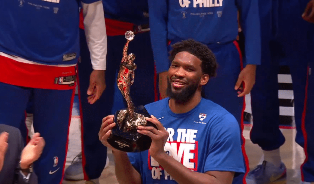 赛前队友恩比德领取了常规赛MVP的奖杯,哈登也送上掌声,此前他庆祝恩比德斩获MVP,送给他一块手表,非常大气。当然球迷们希望他们可以一起联手拿下NBA总冠军。