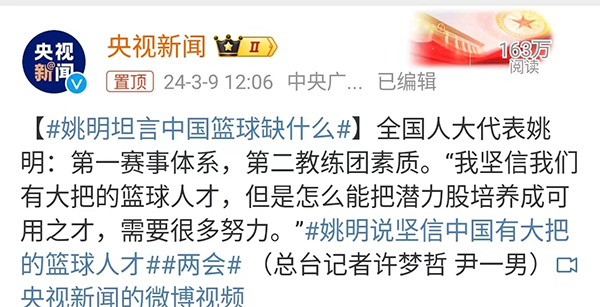 而在接受采访的时候,姚明也是曝出了中国篮球如今发展的两个问题,姚明表示他相信以中国数量巨大的篮球人口,我们取得肯定不是篮球人才。姚明表示当下中国篮球需要解决的是两件事情,第一个是赛事体系。假如一个还在在村BA体系打球,我们能不能通过赛事体系把他挖掘出来,找到他,或者至少知道他。第二是教练团素质,配备每一个年龄段的教练团,教练团需要把人才从潜力股对象成一个可以使用的人才。需要做出很多努力。