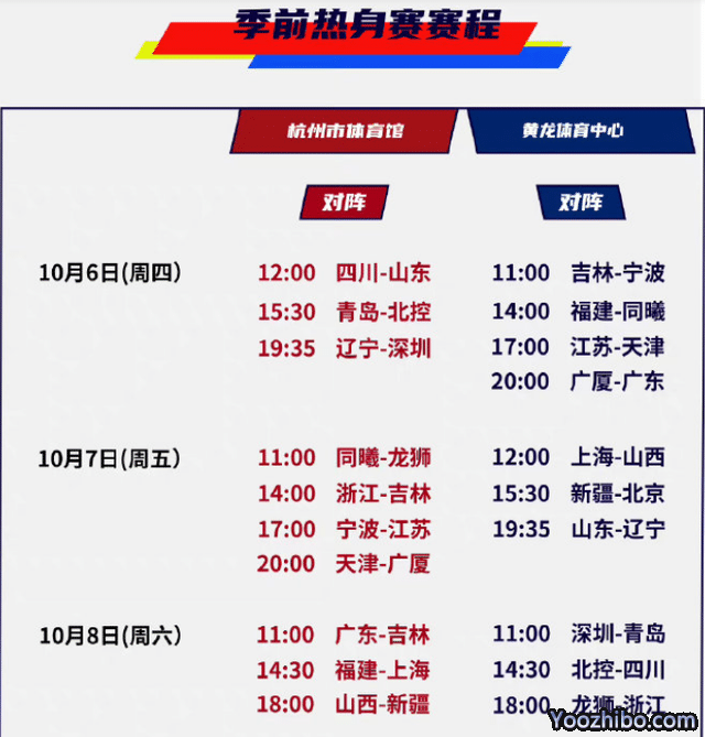 CBA官方公布季前赛赛程,山东连续对阵四川辽宁,广东约战广厦