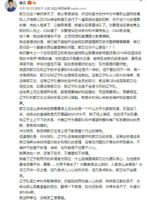 其实这件事情上,从一开始辽篮的态度就是不放郭艾伦走人,希望他留队,当郭艾伦提出离队申请,当时辽媒就联系俱乐部的人员,言论就是不放郭艾伦离开,想要出走的话,只能去海外联赛。如今有多家海外的俱乐部联系郭艾伦,他还需要评估,是去这些候选的球队,还是继续留守辽篮,月底基本上就会见分晓。