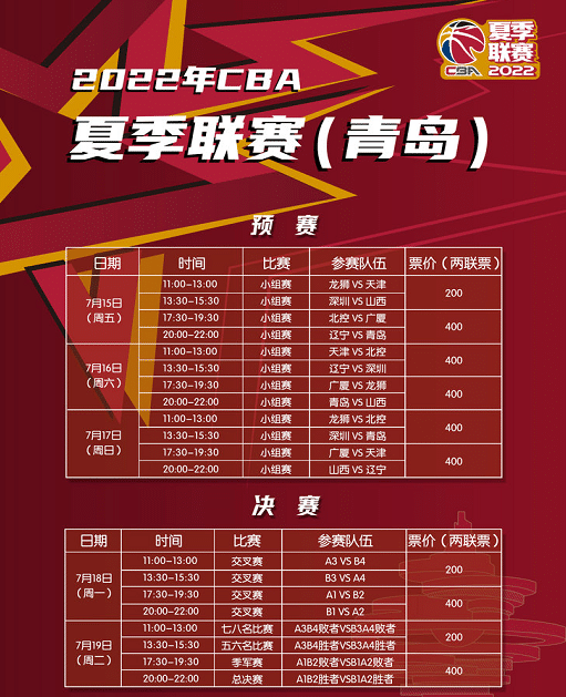 CBA夏季联赛一共有8支球队参加,辽篮所在的小组有东道主青岛、山西和深圳,从15日开始到19日结束,一共5天,每天都有比赛,前三天是单循环的小组赛,小组赛前两名晋级到四强的半决赛,小组赛后两名出战卡位战,然后小组交叉对阵,直到决出最终的冠亚季军和4-8名。