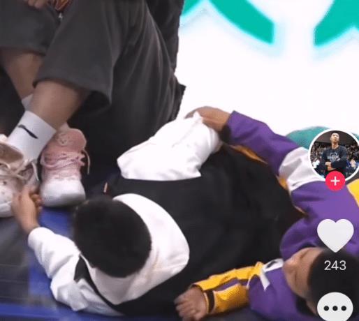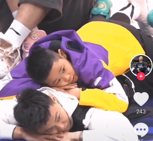 这个小朋友是赵睿家的孩子吗?显然也不是,为什么呢?其实熟悉广东男篮的球迷看到和赵睿互动的孩子并不会陌生,这个小男孩就是广东男篮主教练杜锋的儿子——虎头。此前,虎头参加U10比赛,带队获得冠军,留在北京上学的虎头也被很多球迷看好未来有机会加盟广东男篮或者首钢男篮。