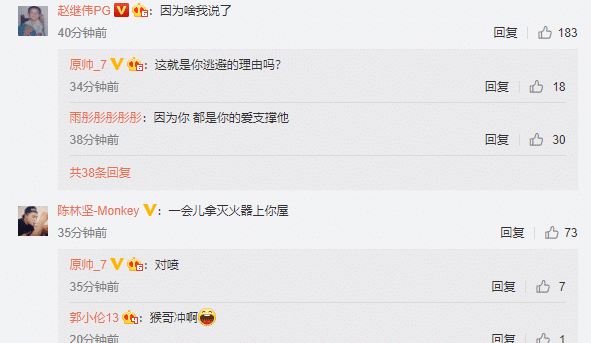 原帅回应:“这就是你逃避的理由吗?”球迷们也是纷纷调侃,这是因为爱情。