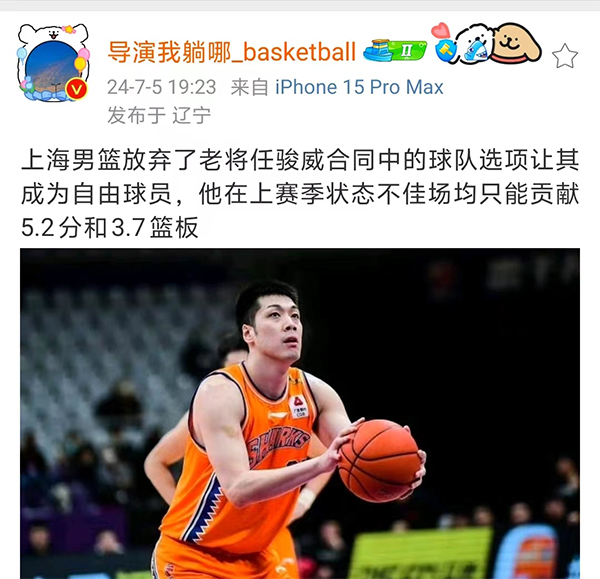 而在休赛期,根据“导演我躺那”的报道:上海男篮放弃了任骏威老将合同中的球队选项,让其成为了自由球员,据悉,在上赛季状态不佳,场均只能贡献5.2分3.7篮板。除了表现不佳,任骏威上赛季还一度因为肘击对手受到了联盟的中重罚,这也让任骏威受到了很多球迷的质疑。值得一提的是,任骏威的官方年龄是34岁,可是在任骏威生日的时候,刘铮却表示:“撇出不管是不是真实年龄,你的价值我们都懂。”刘铮的话语也被很多球迷认为暴露了任骏威年龄作假的事情。