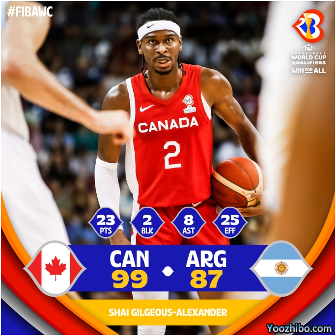 24直播网讯 08月26日讯,在今日,男篮世界杯美洲区预选赛的一场加拿大对阵阿根廷的比赛已经结束了,加拿大最终以99-87的最终比分战胜了阿根廷。