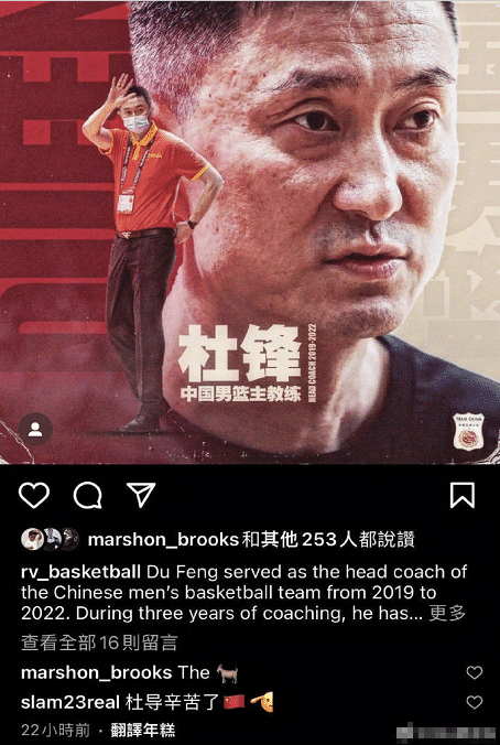杜锋下课之后,中国男篮的多名球员都在社交媒体上发文送上祝福,其中在杜锋手下机会不是很多的阿不都沙拉木转发杜锋指导的图片,并在评论区留言感慨,称“杜导辛苦了”;