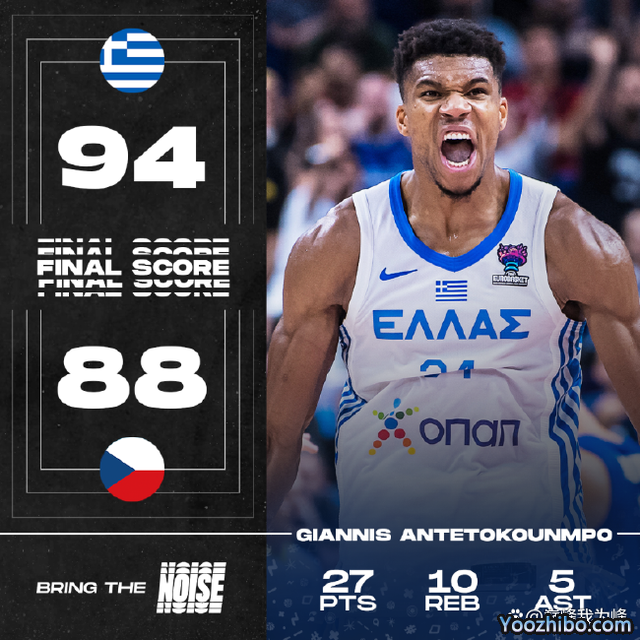 24直播网讯:北京时间9月12日凌晨,男篮欧锦赛16进8的比赛,希腊队迎战捷克队,希腊队首节一度领先10分,捷克队追平,双方此后拉锯,第四节希腊队在字母哥带领下再次建立10分优势,最终希腊队94-88战胜了捷克队,晋级八强。