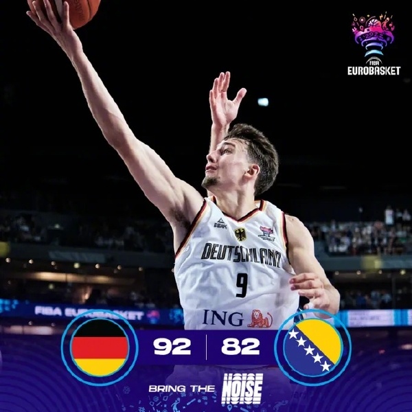 24直播网9月3日讯 在今天结束的一场欧锦赛B组的小组赛中,德国92-82逆转击败波黑,取得两连胜。半场结束时,波黑47-42暂时领先德国。比赛来到第三节,德国单节打出28-11,顺利逆转局势。最终,德国依靠末节的稳定发挥获得了比赛胜利。