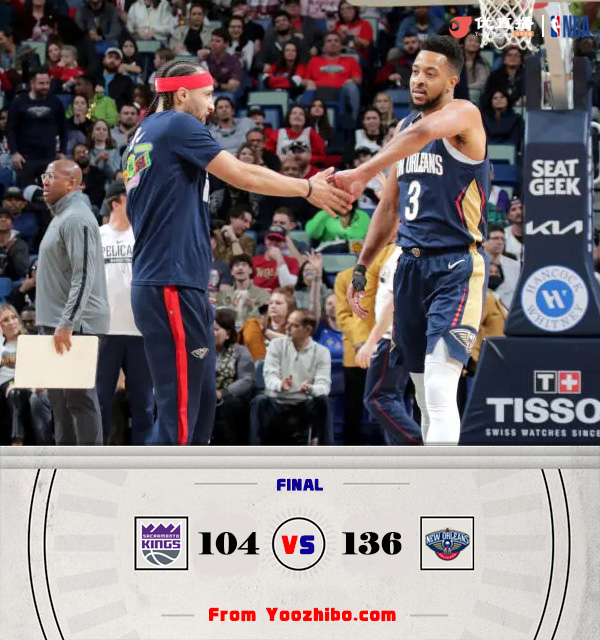 24直播网2月6日讯 今日NBA常规赛,鹈鹕坐镇主场迎战国王,鹈鹕上一场刚刚终结十连败,目前以27胜27负排名西部第十,国王则是29胜22负高居西部第三。本场福克斯和英格拉姆缺阵。比赛开局,国王首发进攻状态不佳,鹈鹕很快建立两位数的领先优势,替补上场后国王稍稍迫近比分,次节鹈鹕延续进攻状态,外线多点开花,国王无法在进攻端匹配,鹈鹕一度打出一波11-0的进攻高潮,分差来到20分,半场结束,鹈鹕70-52领先。易边再战,国王依然没能打开进攻状态,鹈鹕延续场上优势,一举将分差拉开到30分。比赛很快来到第四节,两队交替得分,比赛很快失去悬念,进入垃圾时间,最终鹈鹕主场136-104大胜国王,取得两连胜。