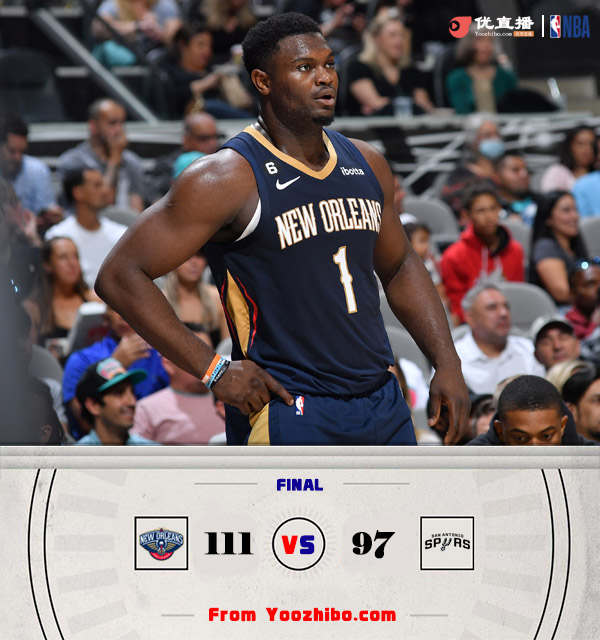 24直播网10月10日讯 NBA季前赛,马刺对阵鹈鹕。马刺想要得到文班亚马的心已经路人皆知,鹈鹕这边续约麦科勒姆和锡安后继续保持一定的竞争力。一开场,鹈鹕率先发力取得领先,马刺奋力反击,首节结束鹈鹕领先4分。第二节,双方继续缠斗,比分咬得很紧,半场战罢鹈鹕50-44领先6分。下半场,马刺一度将比分扳平,但此后突然断电,鹈鹕一波14-0的进攻高潮领先21分进入末节。第四节,双方轮换阵容旗鼓相当,鹈鹕轻松将优势保持到了最后。最终,鹈鹕111-97轻取马刺,顺利过关。