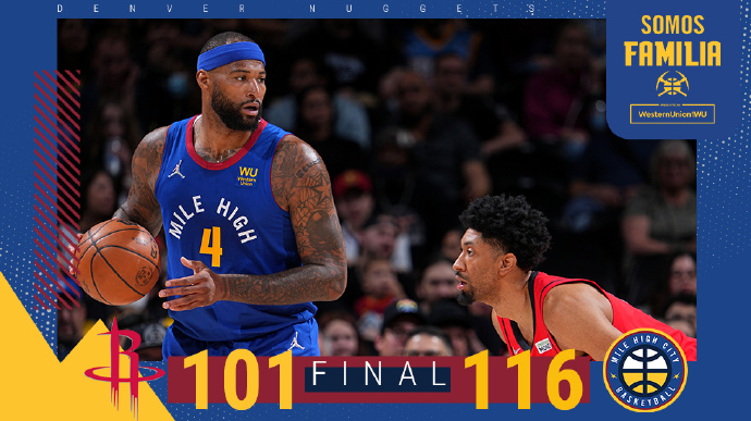 24直播网3月5日讯 NBA常规赛继续进行,掘金主场迎战火箭,掘金目前36胜26负排在西部第6位,火箭则是又经历一波11连败继续西部垫底,本场比赛约基奇因生病缺战。开局考辛斯状态不错里突外投帮助掘金迅速建立领先,但火箭一群年轻球员靠冲劲也能咬住比分,萨古最后上来连续打成帮助火箭领先1分,次节掘金替补纷纷站出来,海兰德和贾马考-格林相继成为奇兵帮助掘金重新掌握比赛主动权,但最后2分多钟掘金一分未得,被火箭抓住机会打出10-0攻击波重新追到5分分差。第三节,考辛斯继续自己的火热状态里突外投连续取分帮助掘金牢牢掌握住十几分领先,面对火箭的追分球掘金总能给出回应,末节掘金始终保持着双位数领先,火箭后半节外线手感也一般,分差始终没有被缩小,最终掘金击退火箭,送对手12连败。