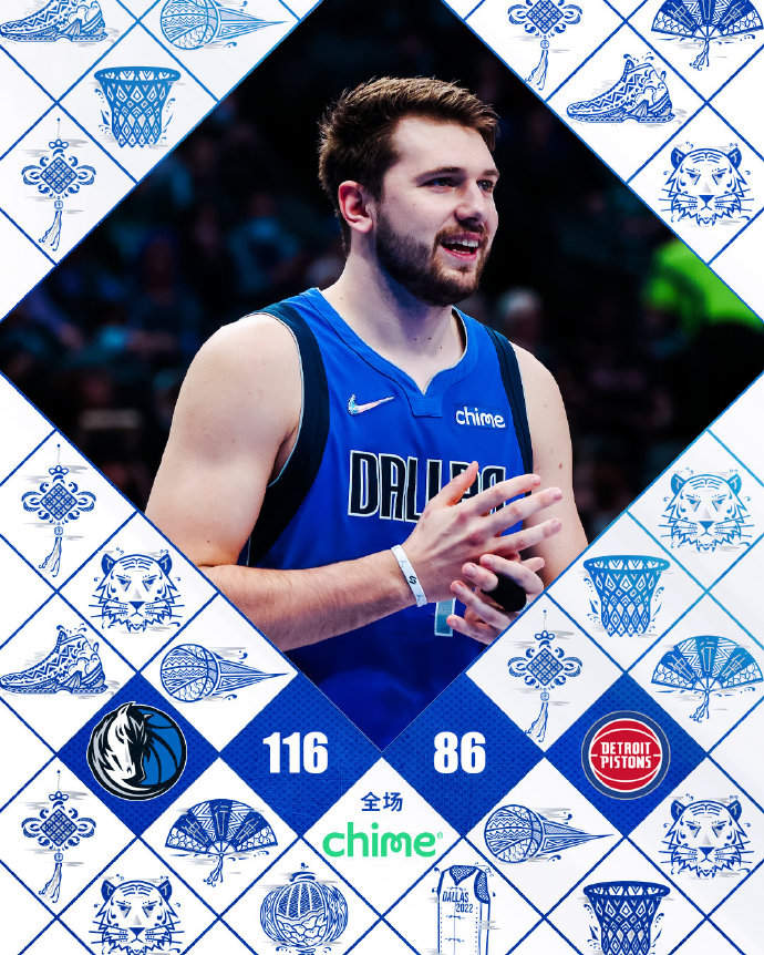 独行侠(32-23):东契奇33分11助攻7篮板2盖帽1抢断、布伦森21分4助攻、伯克18分3篮板、布洛克12分4篮板、芬尼-史密斯11分7篮板3助攻2抢断、鲍威尔10分7篮板、克莱伯5分7篮板、尼利基纳4分3篮板、约什-格林2分3篮板3抢断