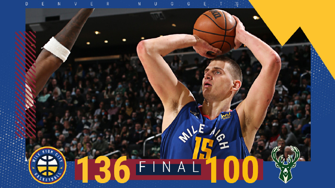 24直播网1月31日讯 NBA常规赛,雄鹿主场迎战掘金。霍勒迪回归后雄鹿稳定性大增,球队目前排在东部第五。掘金在约基奇的带领下取得4连胜,现在位列西部第六。首节比赛,双方陷入缠斗,比分始终紧咬。掘金连中三个三分,领先3分结束首节。第二节,掘金在约基奇的穿针引线下将分差拉开到两位数,霍勒迪和字母哥合力贡献12分,半场战罢65-57领先8分。下半场,掘金火力全开,约基奇独得7分带队将分差拉开到20分以上,米德尔顿拿分苦苦支撑,三节打完掘金握有22分领先。末节开打,掘金连中三分扩大领先,福布斯连得7分杀死比赛。最终,掘金大胜雄鹿,喜迎5连胜。