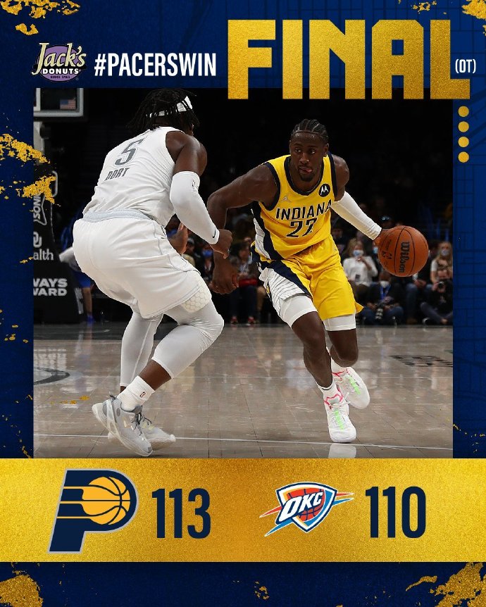 24直播网1月29日讯 NBA常规赛,雷霆今日迎战步行者,前者六连败后排在西部倒数第二的位置,后者则是遭遇三连败暂列东部第十三位。比赛上来步行者率先进入状态取得领先,但是在首个暂停之后雷霆的命中率回升,两队开始展开拉锯,次节双方也都未能获得拉开分差的机会,场上比分交替领先,半场结束时雷霆领先3分。易边再战,雷霆一波12-0的小高潮将分差拉开到了两位数,但是亚历山大却扭伤脚踝离场,步行者随后将比分追了上来,比赛悬念一直保持到了最后,关键时刻兰姆和勒韦尔连续绝杀不中,比赛进入加时,加时赛双方依旧打得难解难分,雷霆连续错失机会,最终步行者加时险胜雷霆,结束三连败的同时也送给后者七连败。
