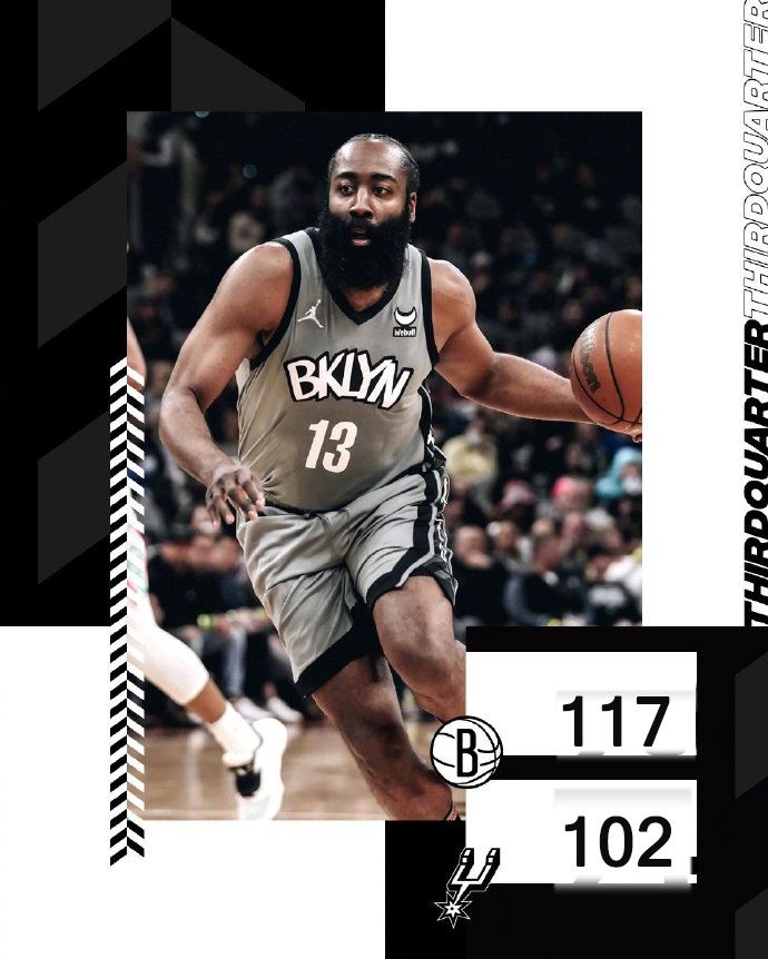 24直播网1月22日讯 NBA常规赛继续进行,篮网客场挑战马刺。篮网近期状态不佳,杜兰特也遭遇伤病,虽然仅能够出战客场,但欧文的回归绝对是雪中送炭。马刺在遭遇一波连败之后稍有回暖,但依然仅仅排在西部倒数第四。本场比赛米尔斯和阿德迎战旧主。一开场,哈登和欧文联手带队帮助篮网开局14-5领先,马刺回敬7-0的攻势一举反超,首节结束马刺领先2分。第二节,两队依然打得非常激烈,比分交替领先,哈登得分助攻一肩挑,马刺多点开花不甘示弱,半场战罢马刺51-50领先1分。下半场,米尔斯连得5分打破得分荒,哈登也连拿8分,马刺不急不躁连续篮下得手一度夺回优势,篮网打出6-0的攻势带着5分领先进入末节。第四节,哈登和欧文合力拿分帮助篮网取得两位数领先,并且稳扎稳打将优势保持到了最后。最终,篮网力克马刺,登顶东部榜首。