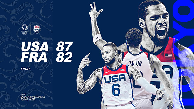 24直播网8月7日讯 美国男篮和法国男篮今日迎来奥运会决赛争夺,美国上一场轻松击败澳大利亚杀入决赛,法国则凭借巴图姆的致命封盖赢下决赛门票,值得一提的是,2019年世界杯中法国男篮在四分之一决赛中10分击败美国并拿到最终第三名的成绩。首节之争法国是更早进入状态的一方,然而拉锯战里自己整体手感一般导致分差迟迟拉不开,这也给了慢热的美国机会,后者在杜兰特和塔图姆的联手中送出12-4的攻势迅速追上比分,次节杜兰特继续杀神一般砍分,在半节未结束之前他就攻下21分并带领美国拉开两位数领先,不过法国及时悬崖勒马,戈贝尔节末连砍8分帮助法国将劣势缩小至5分结束上半场。第三节塔图姆连砍7分一度帮助美国再次拉开两位数领先,不过法国总能崩盘边缘找回状态,卢瓦乌和巴图姆两记三分为法国保留希望。末节法国一波7-2的开局将分差追至3分看到了希望,不过美国关键时刻迅速回暖并在塔图姆的三分进球中重新取得10分领先奠定胜局。最终,美国男篮力克法国再度摘得奥运桂冠。