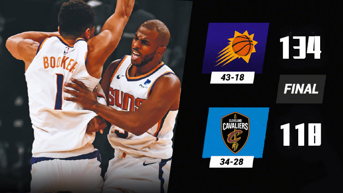 24直播网5月5日讯 NBA常规赛太阳对阵骑士,近来太阳取得4连胜仍旧紧追爵士排在西部第二,骑士则是遭遇6连败。开场后布克就展现出火热手感,他一人独得11分,但骑士多点开花反而取得领先,不过佩恩和萨里奇替补登场后发挥出色帮助太阳反超比分。第二节回来骑士首先外线开张,保罗逐渐找到状态,他除了自己砍分还不停为队友送出助攻,上半场太阳59-53领先骑士。下半场回来骑士仍旧率先外线发力,不过在艾顿的发挥下太阳一度领先到两位数,但多特森和塞克斯顿两人联手掀起反扑帮助骑士追平比分。第四节场上局面仍旧胶着,保罗带领太阳始终保持略微优势。最后阶段奥科罗连续强硬突破帮助骑士将比赛拖入加时。加时赛中骑士突然断电,太阳一波15-0的攻势直接拉开比分锁定胜局,最终太阳加时134-118拿下骑士取得5连胜,骑士遭遇7连败。