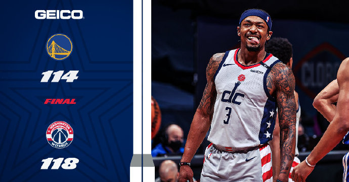 24直播网4月22日讯 今日NBA常规赛,勇士客场挑战奇才,勇士过去8战6胜,而奇才目前也已经取得5连胜。比赛开始后,奇才率先找到进攻节奏,打出一波11-0进攻高潮取得领先,勇士连续出现失误而且投篮接连打铁,首节比赛奇才38-20领先勇士18分。第二节比赛开始后,奇才进攻效率降低陷入得分荒,勇士抓住机会开始发起反击,连续打出进攻高潮将比分缩小至只剩2分。下半场比赛开始后,奇才连得7分将将领先优势扩大至9分,之后勇士开始发力,勇士里突外投打出一波13-0将比分迅速,三节战罢,勇士93-86反超奇才7分。最后一节,勇士外线将领先优势扩大至9分,奇才不断冲击勇士内线缩小比分,双方分差一度只剩一分,最后奇才连续突入内线将比分反超,最后奇才118-114力克勇士。