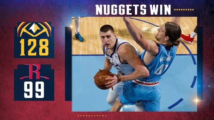掘金(36-20):约基奇29分16篮板7助攻2抢断,波特21分5篮板,巴顿12分,莫里斯6分2助攻,戈登8分2篮板,格林13分7篮板,米尔萨普11分10篮板,坎帕佐7分2助攻。