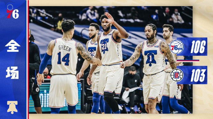 76人:恩比德36分13篮板、西蒙斯12分9篮板6助攻2抢断2盖帽、格林11分7篮板3助攻3抢断2盖帽、科克马兹18分3篮板4助攻4抢断、斯科特6分3篮板、塞布尔5分3篮板2抢断、马克西9分1篮板2助攻、米尔顿6分2篮板2助攻