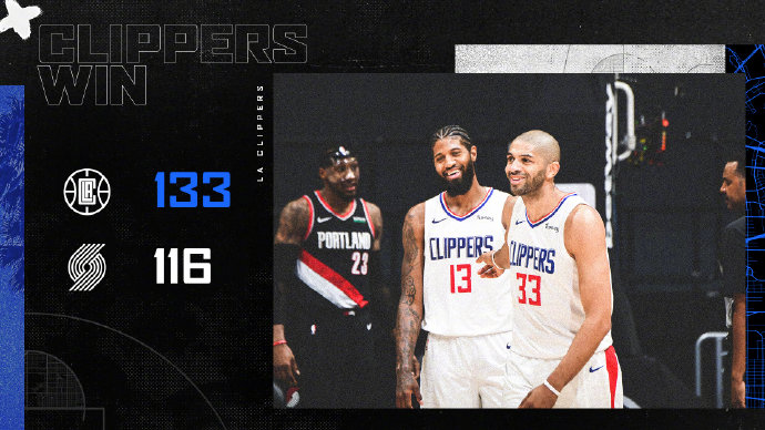 24直播网4月7日讯 NBA常规赛快船主场对阵开拓者,开场后快船迅速进入状态,虽然坎特和麦科勒姆先后爆发,但乔治首节独得22分带领快船单节轰下47分建立起15分优势。第二节虽然快船率先发力一阵三分雨下一度将分差拉大到35分,开拓者依靠鲍威尔和麦科勒姆轮番砍分逐渐追上比分,上半场快船73-66领先7分。下半场回来虽然开拓者掀起反扑追分,但雷吉挺身而出独得8分帮助快船稳住节奏,此后开拓者仍旧不断发起反扑追分,但乔治和雷吉总是及时拿分,第四节快船将分差拉大到20分左右,最终快船133-116轻松击败开拓者。