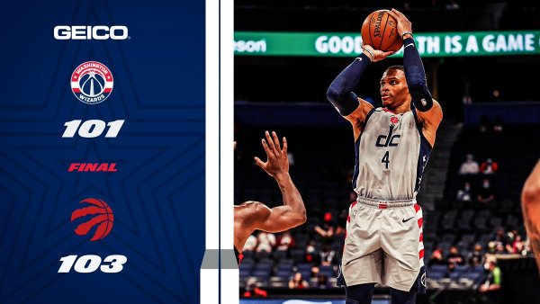 24直播网讯 4月6日讯 NBA常规赛,奇才客场挑战猛龙。本赛季奇才饱受伤病困扰,近期也是遭遇了三连败,仅仅排在东部倒数第五。而跟本场的对手猛龙可谓是难兄难弟,猛龙排名仅仅比奇才高出一位,但是上一场比赛他们53分大胜勇士大大提升了球队的士气。本场比赛猛龙范弗里特、洛瑞以及奇才的比尔、八村塁均因伤缺阵。一开场,威少发力帮助奇才迅速取得领先,西亚卡姆连拿10分缩小分差,首节打完奇才领先9分。次节比赛,两队互送进攻高潮,奇才多点开花,猛龙依靠西亚卡姆个人苦苦支撑,奇才61-51领先10分结束上半场。易边再战,奇才率先发力一度把分差拉大到19分,猛龙众将发力持续追赶,三节打完奇才领先11分。末节争夺,奇才突然断电,猛龙完成了一波21-4强势反超。关键时刻威少命中三分,特伦特三分绝杀奇才。最终,猛龙逆转绝杀奇才,送给对手四连败。