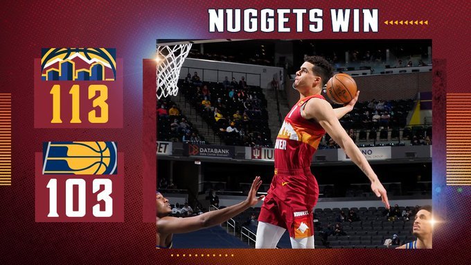 24直播网3月5日讯 NBA常规赛,步行者今日坐镇主场迎来掘金的挑战,前者上场战胜骑士后暂列东部第九,后者状态不错三连胜排在西部第七的位置,本场比赛掘金由于健康管理协定和伤病,米尔萨普、坎帕佐多人缺阵。首节比赛双方状态不错,先是掘金上来就打出一波13-2得到领先优势,随后掘金突然哑火,步行者则火力全开,依靠特纳和霍勒迪的三分和全队的反击突然打出一波17-0又将分差反超6分,最后几分钟掘金依靠穆雷和巴顿的发挥将分差缩小到1分。次节比赛掘金上来手感继续火热,内线外线多点开花将分差反超6分,而步行者本节手感不佳依靠特纳的冲抢咬住比分,掘金最后依靠全队发挥领先步行者9分结束次节。易边再战,双方上来进攻效率不高,掘金则是连续失误被步行者抓住机会一举将比分扳平。掘金暂停调整后约基奇开始发挥连续助攻队友打进帮助掘金重新取得8分领先,双方对攻几个后掘金继续保持8分领先进入末节。末节之争,步行者上来突然哑火,而掘金则是火力全开波特连续飙进3分,穆雷反击也不断打进,掘金打出一波17-7将分差扩大到18分。末节最后时刻步行者连续飙进3记三分强行保持比赛悬念,但是最后时间不够步行者追分未果,最终掘金113-103战胜步行者迎四连胜。