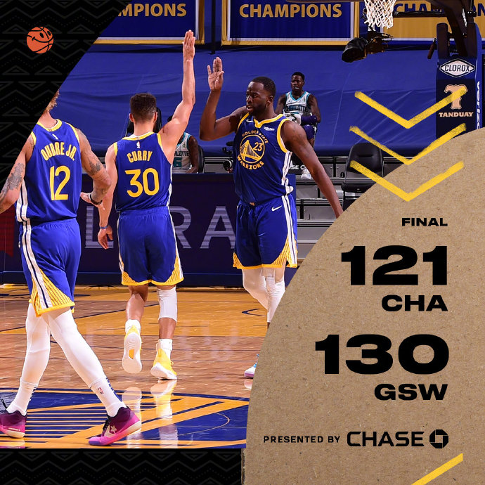 勇士(19-15):库里29分4板9助、乌布雷27分6板3助、卢尼10分、维金斯17分3板3助、格林11分12板19助、怀斯曼16分4板、达米恩-李10分3板3断