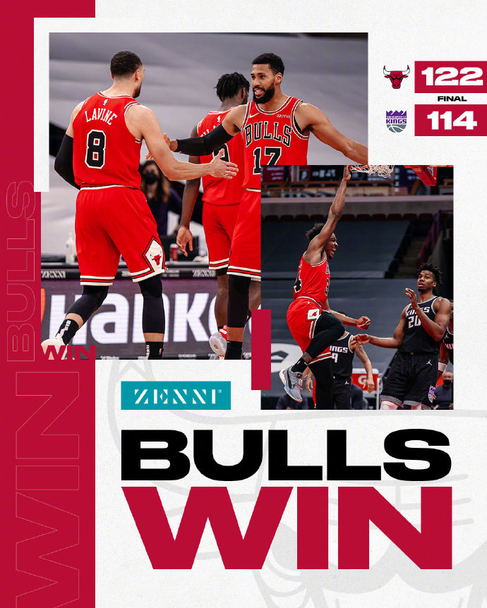 24直播网2月21日讯 NBA常规赛公牛主场迎战国王,此前国王已经遭遇五连败,本场巴恩斯和霍姆斯因伤缺席。国王将怀特塞德提上首发,和巴格利组成双塔,开场后两队交替得分,随后国王连续失误,公牛逐渐取得领先,次节两队进入对攻战,内线防守都被对方轻易打穿,拉文半场已经拿下20分,助公牛68-58维持领先优势。下半场易边再战,两队得分效率下滑,在拉锯战中,国王始终没能缩小分差,第三节最后0.7秒威廉姆斯还飙中超远三分。末节开局国王打出小高潮,终于将分差迫近到两分,但拉文连续突破,如入无人之境,分差很快重新拉大到十分,国王反超的希望破灭,114-122,遭遇六连败。