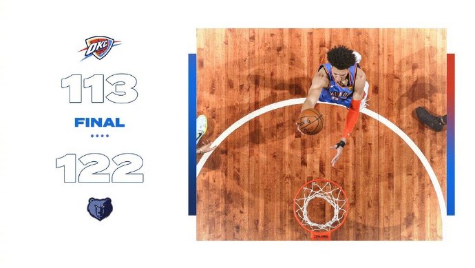 雷霆:多特11分、贝兹利18分7板、亚历山大22分6助、马勒登14分5板、穆斯卡拉21分