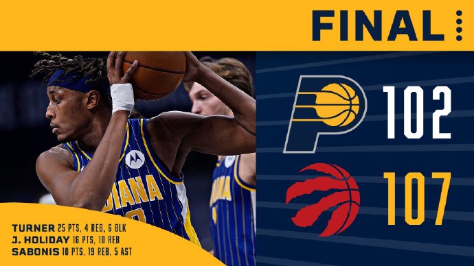 步行者:特纳投进4记三分25分4篮板3抢断6盖帽,霍勒迪16分10篮板2抢断,麦克德莫特13分3篮板2抢断,杰里米-兰姆13分3篮板,布罗格登12分5篮板5助攻,小萨博尼斯10分19篮板5助攻。