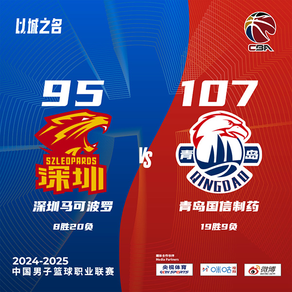 24直播网讯北京时间1月8日讯 CBA常规赛继续进行,深圳主场迎战青岛,青岛近期迎来三连胜,目前18胜9负暂列联赛第8位,深圳上场不敌广东,8胜19负排在联赛第16位。首节开打后双方互相试探,深圳外援约翰逊杀伤内线予取予求,米奇和杨瀚森同样内线取分,王睿泽联手韦瑟斯庞外线续上火力,青岛多点开花始终占优,首节结束时青岛领先3分,次节回来,两队你来我往继续鏖战,韦瑟斯庞延续火力单节再拿11分,青岛稳扎稳打将优势扩大,半场战罢,青岛已经领先12分。短暂休整后青岛进攻稍有停滞,深圳将分差缩小至个位数,末段王睿泽和韦瑟斯庞接连发力,三节结束后青岛依然领先14分,末节决战,深圳没有放弃继续追分,但杨瀚森及时发力不断取分,青岛总能给予回应,最终青岛107-95力克对手迎来四连胜。