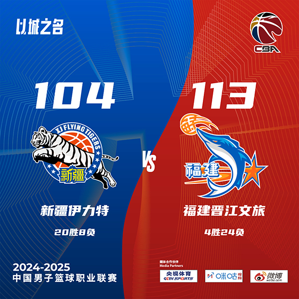 24直播网讯北京时间1月10日讯 CBA常规赛,新疆主场迎战福建。新疆20胜7负排在联赛第四,福建3胜24负垫底。一开场,齐麟高效输出,邹阳内外开花还以颜色,次节皮特森连中三分将分差拉开到两位数,福建多点开花迫近比分,路易斯-金三分一度反超,新疆三分3连击打出12-3以63-57领先结束上半场,下半场,双方继续缠斗,比分始终紧咬,曾凌铉连中三分带队反超,末节福建稳扎稳打保持优势,新疆连投带罚苦苦追赶无果。最终,新疆爆冷主场104-113不敌福建。