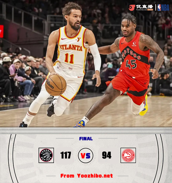24直播网讯 北京时间1月26日讯 NBA常规赛,猛龙对阵老鹰,猛龙最近取得2连胜,老鹰遭遇3连败。比赛开始后老鹰多点开花率先打出攻势,奥孔武表现活跃接连拿分,老鹰一度领先到12分,随后巴恩斯站出来为猛龙缩小分差。第二节猛龙连续打出反击将比分反超,老鹰虽然努力追分,但巴雷特和巴恩斯总能及时回应,半场过后,猛龙反超老鹰7分。下半场回来,猛龙在巴恩斯和巴雷特的带领下依旧打得有声有色,特雷-杨手感不佳,老鹰的轮换阵容进攻表现也不行,反倒是布歇替补表现相当神勇,猛龙继续巩固领先优势。最后一节老鹰依旧失误较多未能掀起有效反扑,猛龙将分差拉大到20分以上,比赛失去悬念,最终猛龙117-94大胜老鹰取得3连胜,老鹰遭遇4连败。